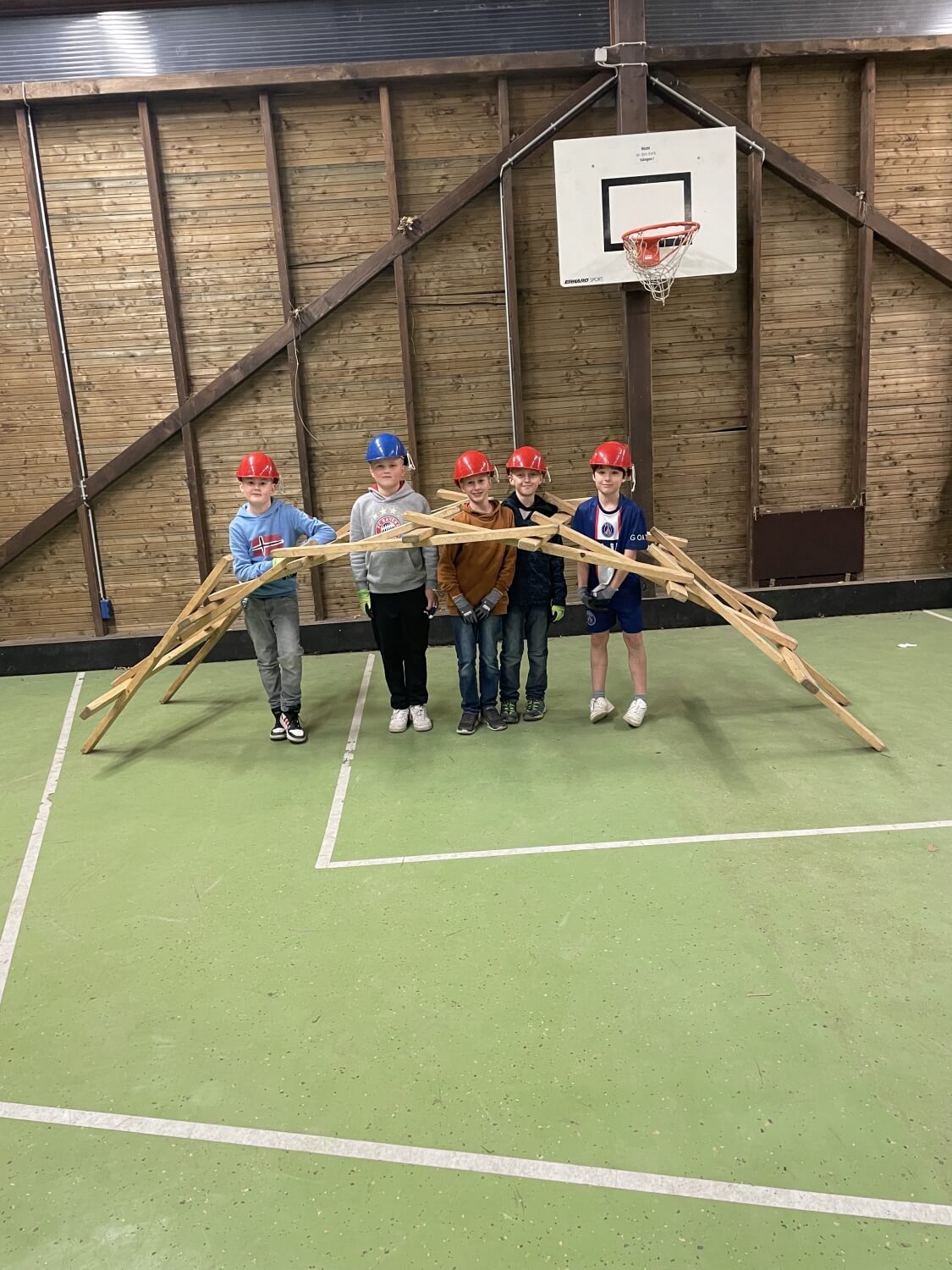 Dies wurde z. B. bei der Disziplin „Brücken bauen“ erprobt, wobei die Kinder sich erst in Kleingruppen und dann mit der gesamten Klasse der Aufgabe stellten, wie sie aus unzähligen Holzscheiten eine begehbare Brücke bauen könnten. Hier war Fingerspitzengefühl und vor allem Taktik gefragt.