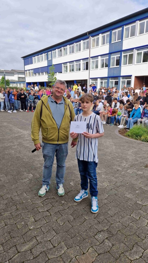 Am letzten Schultag haben wir unsere Tradition fortgesetzt und besondere Ehrungen vor der gesamten Schulgemeinde auf dem Schulhof gefeiert. Ein großes Dankeschön an alle Schülerinnen und Schüler sowie Lehrerinnen und Lehrer, die diesen besonderen Moment mit uns geteilt haben!