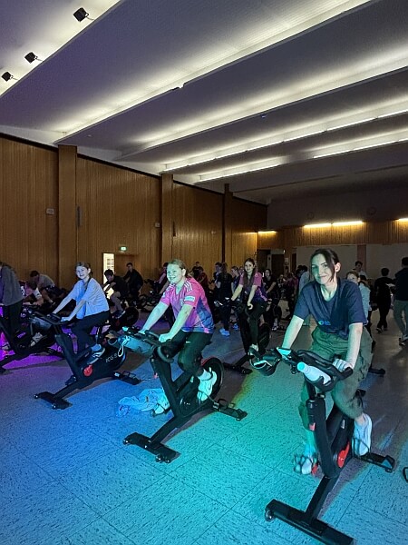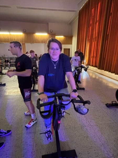Am Freitag waren zunächst die Jugendlichen der Realschule an der Reihe. „Sportmedizinisch hatte alles Hand und Fuß. Niklas Schmoll-Klute, Fitnesstrainer im Studio life, hat den Drill-Instructor gemacht und natürlich die Vitalfunktionen aller Teilnehmenden im Auge behalten“, so der Schulleiter. Mit Technik von Hochton habe es fetzige Sounds und stimmungsvolles Licht gegeben. „Die Leistungen wurden langsam gesteigert. Die längste Strecke legte Tom aus der Klasse 5c zurück. Er saß für 34 Kilometer im Sattel. Die meisten schafften um die 20 Kilometer“, verdeutlichte Münch.